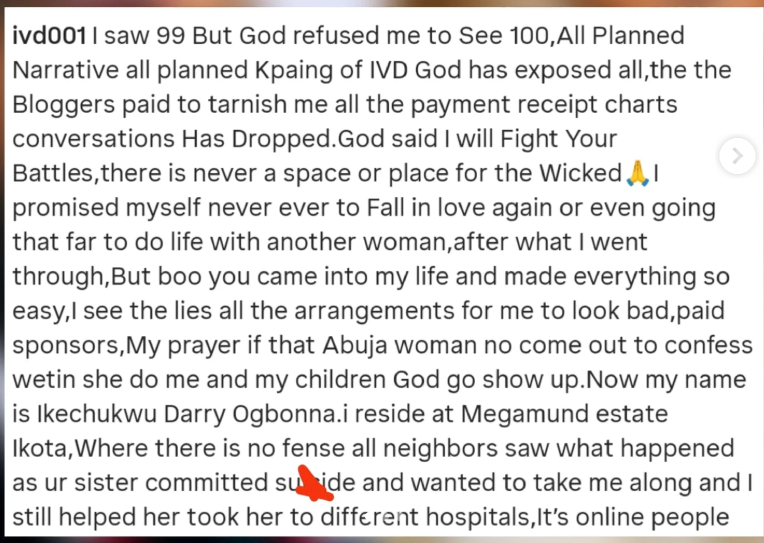 In a lengthy post, IVD stated he saw “99,” but God didn’t let him see “100,” describing the entire situation as a planned narrative to bring him down.