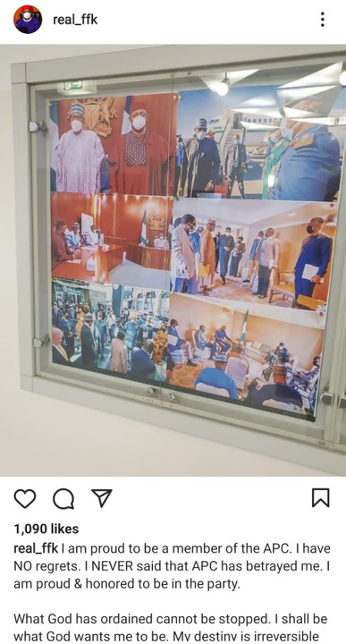 “I am proud to be a member of the APC. I have NO regrets. I NEVER said that APC has betrayed me. I am proud & honored to be in the party.