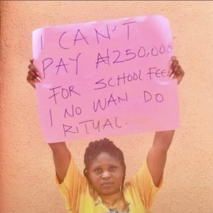 A placard with the inscription, “I can’t pay N250,000 for school fees, I nor wan do ritual” has been trending on social media after students of Delta State origin took to the Roundabout at Effurun to protest against the hike in school fees across tertiary institutions in the state.