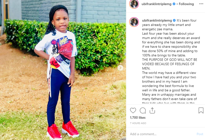 Ubi Franklin expressed anguish of living with the emotions of three women (excluding his fourth baby mama, Sandra Iheuwa) as he celebrated his daughter, Zaneta’s birthday today August 30.