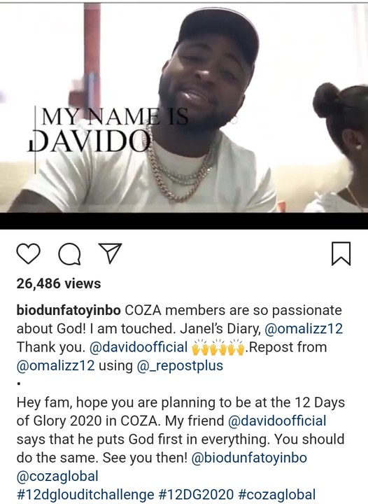 Hey fam, hope you are planning to be at the 12 Days of Glory 2020 in COZA. My friend @davidoofficial says that he puts God first in everything. You should do the same.