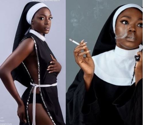 Towards the end of 2018, the model turned actress stunned many Nigerians after she released some pictures in which she wore a raunchy nun outfit and was seen smoking a cigarette. Many people, especially Catholics, considered it as distasteful and an insult to their faith, but the entertainer feels otherwise.