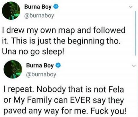 I Repeat, Nobody That Is Not Fela Or My Family Can Ever Say They Paved Any Way For Me - Burna Boy Insists - 9jaflaver