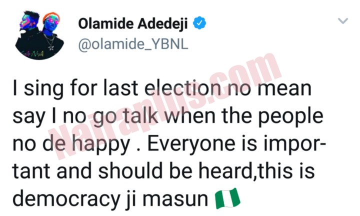 I sing for last election no mean say I no go talk when the people no de happy . Everyone is important and should be heard,this is democracy ji masun