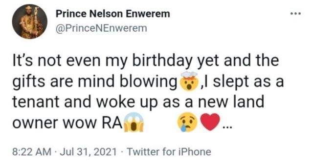 BBNaija reality star, Prince has shared video after getting a house gift from fans. The TV personality said that he slept as a tenant but woke up as a landlord. He is celebrating his birthday today. He shared a clip of himself signing his house document and also other gifts he received from his fans. They sent in a money bouquet alongside other luxury items.