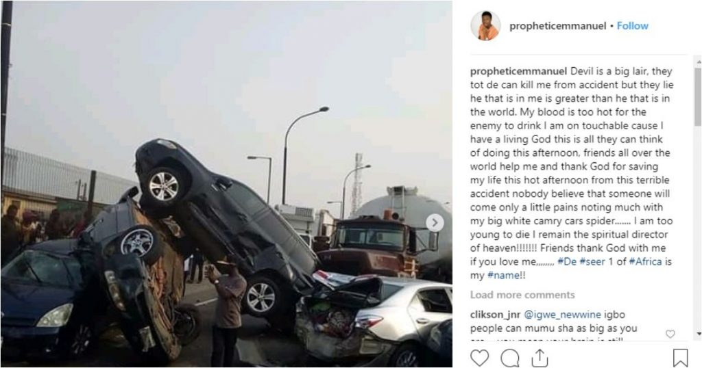 The young Nigerian pastor identified Emmanuel Collins who came under fire after he allegedly faked an accident, had claimed he came out unhurt in the accident because God protected him from harm.