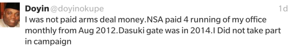 The former media aide to former President Goodluck Jonathan took to his twitter handle to deny claims that he partook in the sharing of the $2.1 billion arms deal…