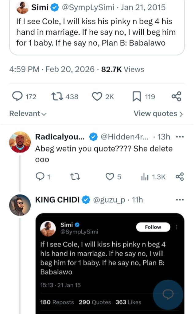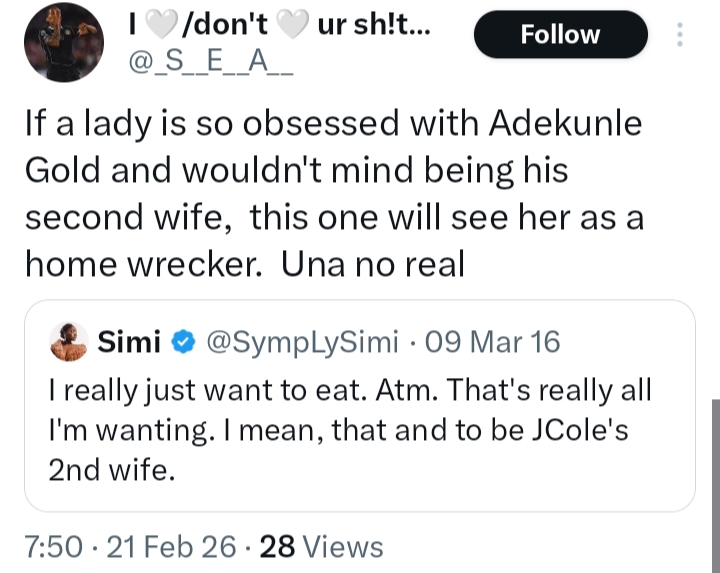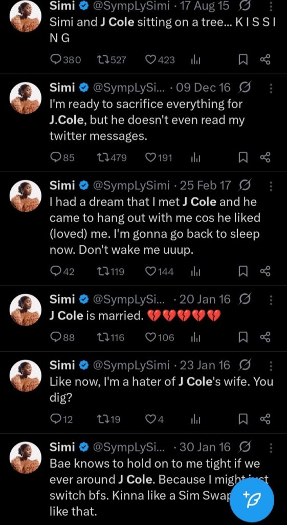 Old tweets from Nigerian singer Simi have resurfaced online, showing her once-playful admiration for American rapper J. Cole.