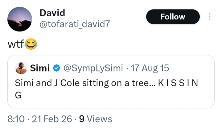 “Simi and J Cole sitting on a tree… K I S S I N G”
