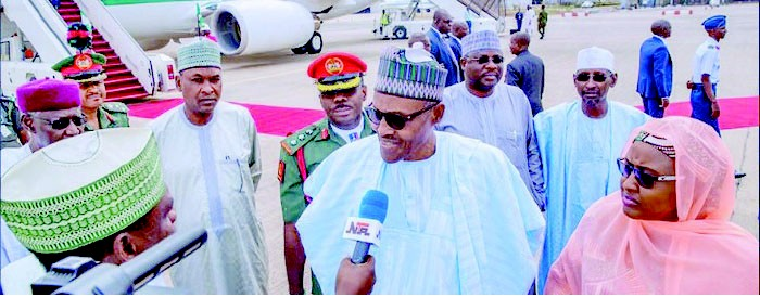 President Muhammadu Buhari has arrived Abuja after a weekend in Katsina for the Presidential and National Assembly elections.