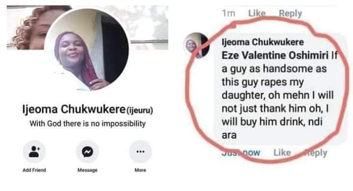If someone as handsome as this guy rapes my daughter, oh mehn I will not just thank him oh, I will buy him drink, ndi ara” she wrote