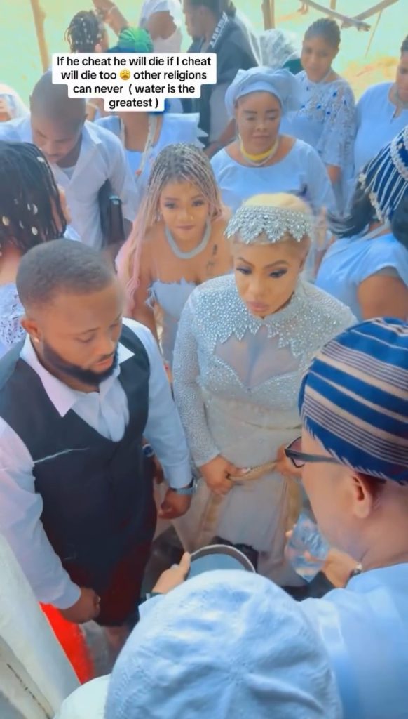 "If he cheats, he'll die. If I cheat too I'll die" Water Queen Mother says as she and Christian husband engage in "water marriage" (video) - 9jaflaver