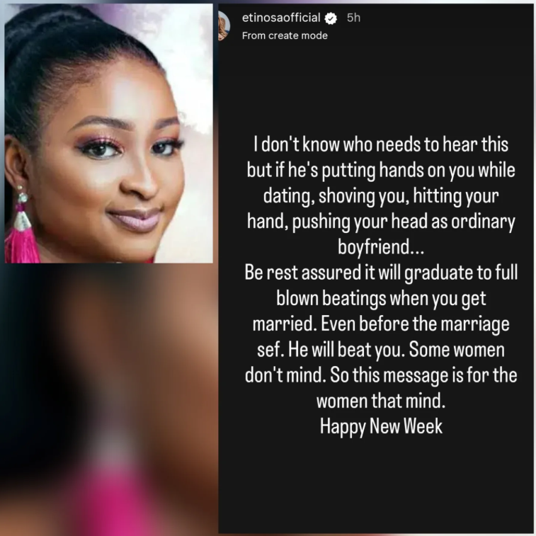 Actress Etinosa Idemudia has dropped a strong message for women in abusive relationships.