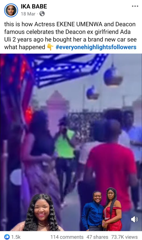 Some suggested that the rift stemmed from Ekene Umenwa’s birthday message to Deacon Famous’ ex-girlfriend, Ada Uli, whom he left to marry a Ghanaian woman.