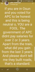 Taking to his insta-story to share his thought on the outcome of the election, Pastor Adeboye’s son, Leke said anyone who voted for APC in the state is a fool.