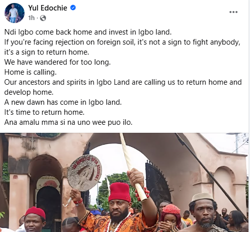 Actor Yul Edochie has asked Ndigbos to return home and invest in the South East.