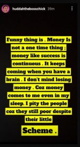 “Popular Kenyan socialite, Huddah Monroe, has fired back at thieves and conmen’ in her country stealing pocket change like $50, $100, and $400.