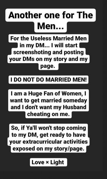 In an Instagram post, Ifu sais she would screenshot all the messages these married men have been sending to her in her private chat.