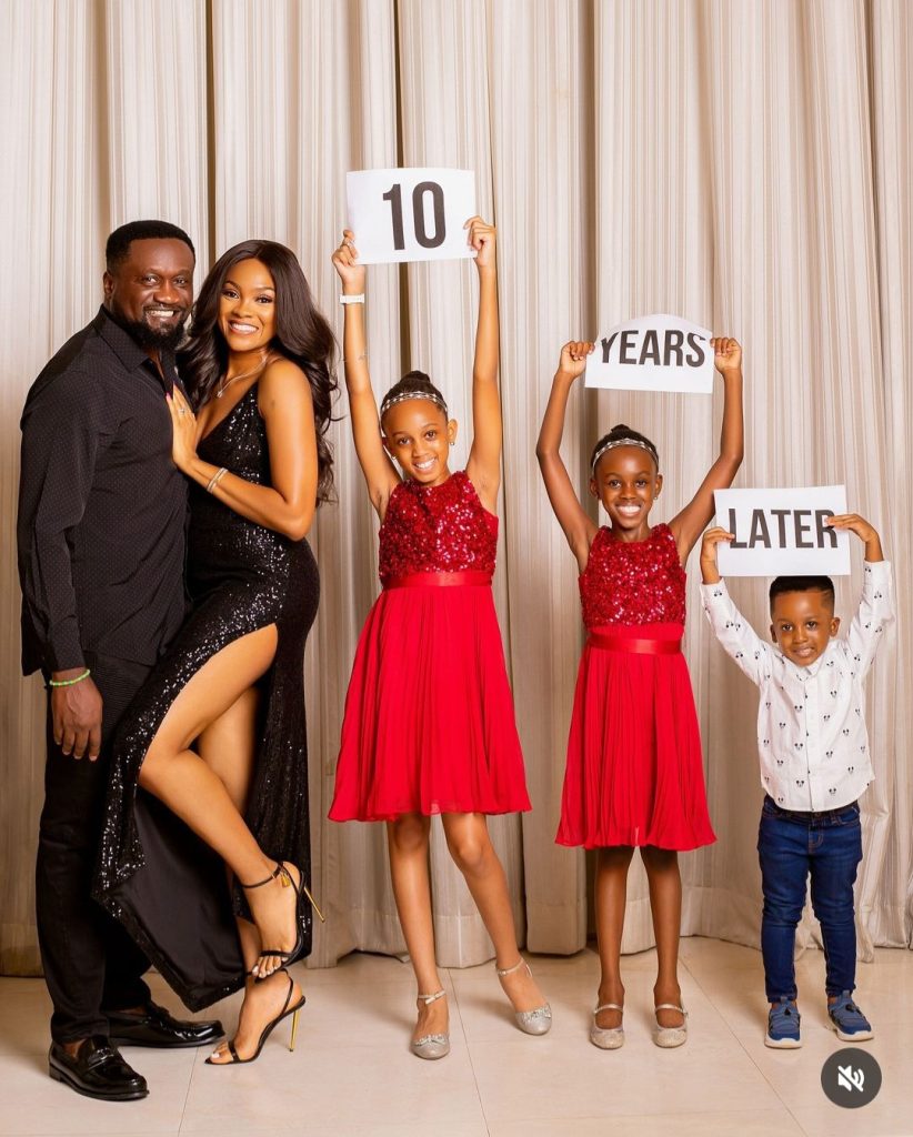 Their union is blessed with three children, who were included in the anniversary photoshoot.
