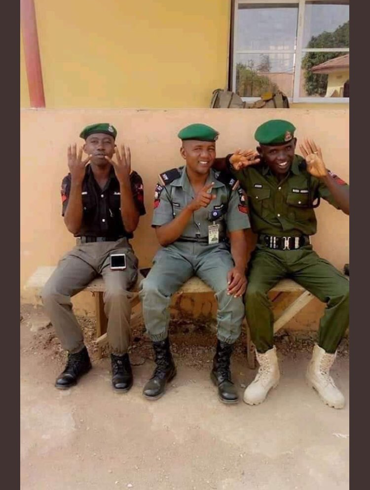 An internet user had earlier shared the photo of 3 policemen displaying the 4 + 4 sign, a symbol associated with Buhari/APC 2019 campaign.