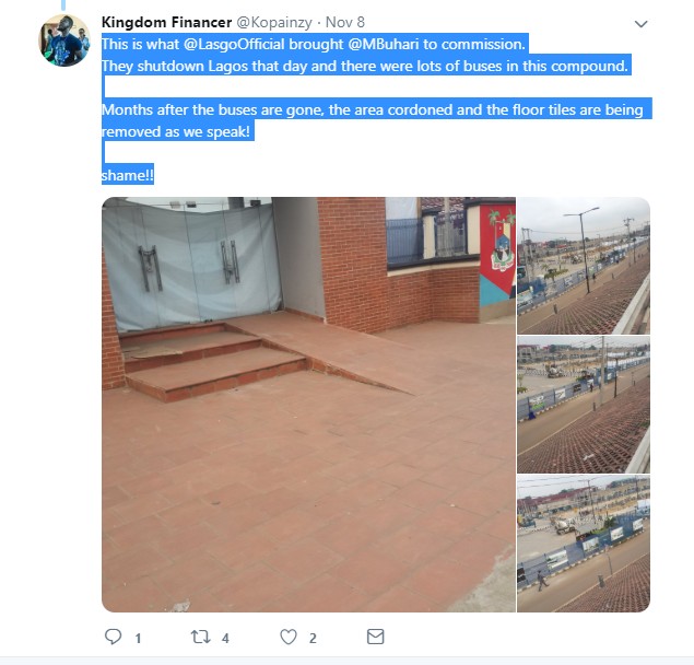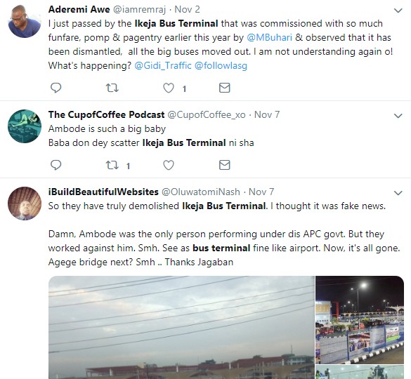 The Ikeja bus terminal which was commissioned by President Buhari months ago, has reportedly been dismantled. It was further gathered that buses at Ikeja bus terminal have also been moved out from the area. Here are tweets from Twitter users over the recent development;
