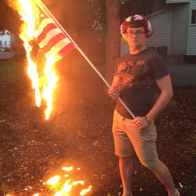 He shared these photos of him burning a U.S flag and the message below