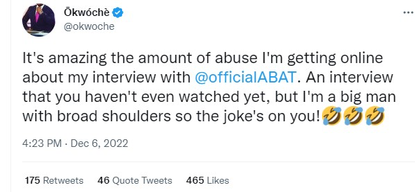 The BBC’s Peter Okwoche posted this before his interview with Bola Tinubu was released.
