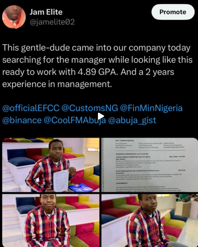 Ahmad’s story has since drawn reactions from social media users, with some applauding his courage while others highlighted the challenges faced by job seekers in Nigeria.