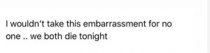 One of the messages allegedly sent to Shyngle by Bala Gaye reads: “I wouldn’t take this embarrassment for no one. We both die tonight. “