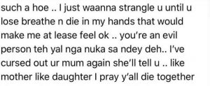 Another reads: “I can’t wait till I get the news you’re dead.”
