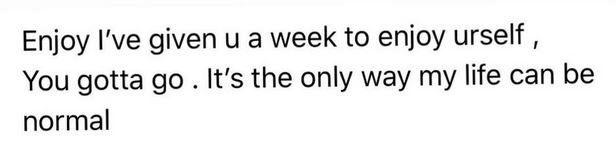Another message reads: “You gotta go. It’s the only way my life can be normal. “