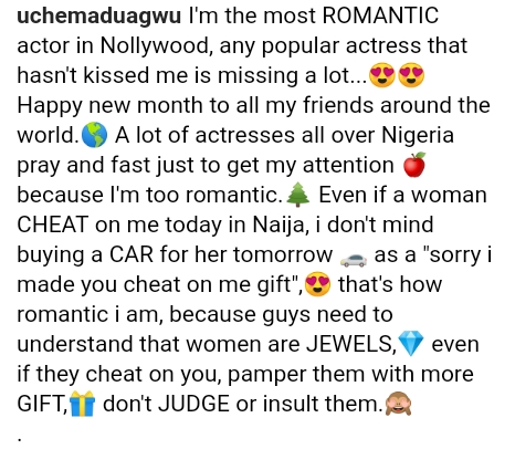 Nollywood controversial Actor Uche Maduagu makes shocking Revelation as he calls himself the most Romantic Actor in Nollywood.