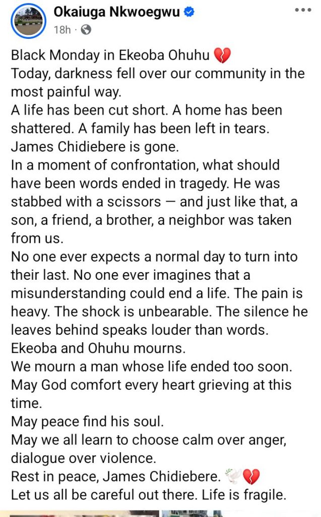 He was said to have collapsed shortly after the incident and was later confirmed d3ad at the Federal Medical Centre, Umuahia.
