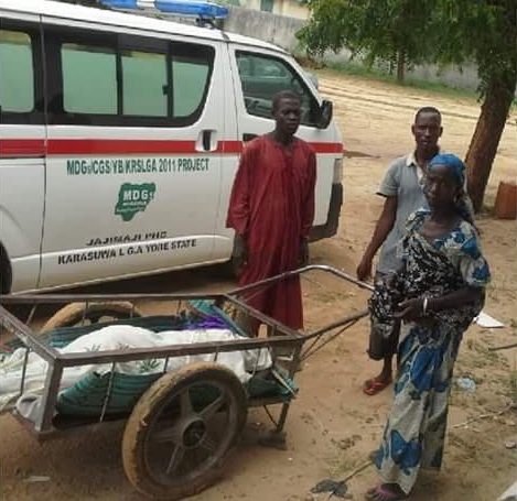 A family in Karasuwa Local Government Area of Yobe State had to carry the corpse of a deceased female relative home for burial in a wheelbarrow after the public hospital where she died refused to provide an ambulance. According to Rariya, the family couldn’t afford money for ambulance service and the hospital authorities declined to transport the body.