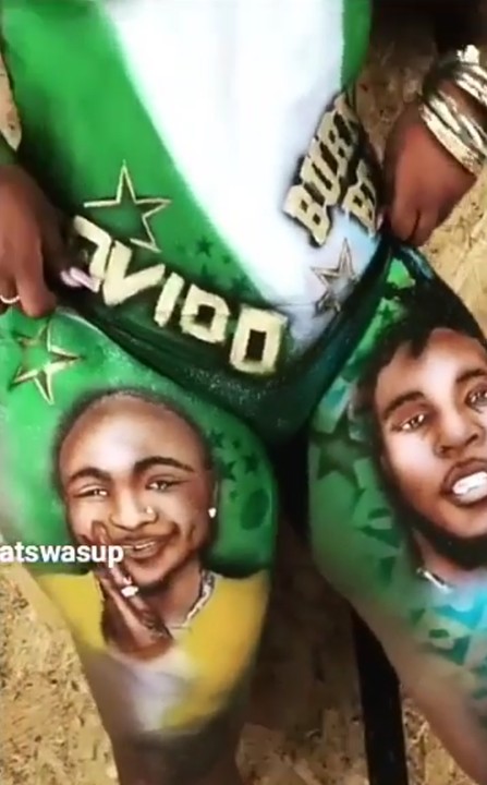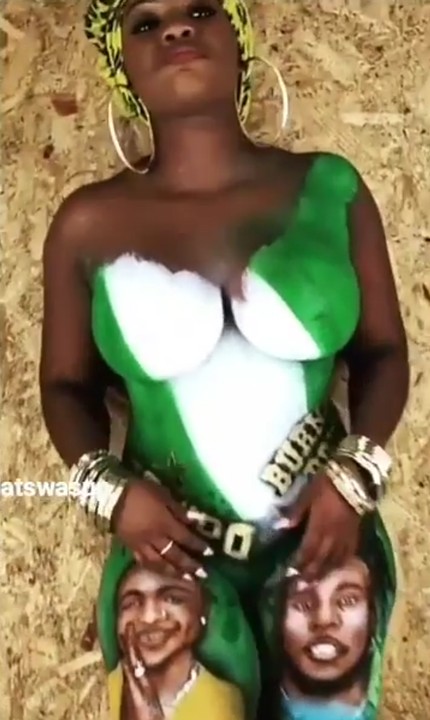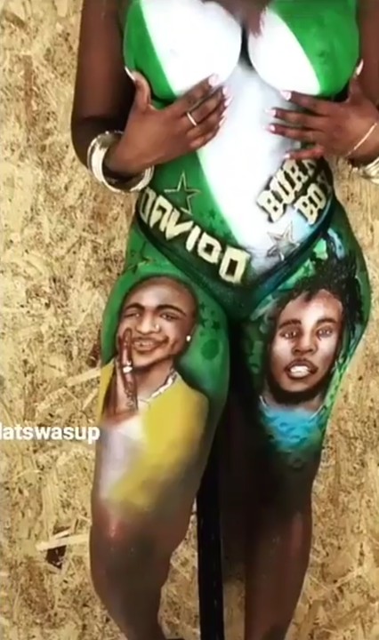 Foreign lady paints her body with Davido and Burnaboy face to celebrate Nigeria Independence.