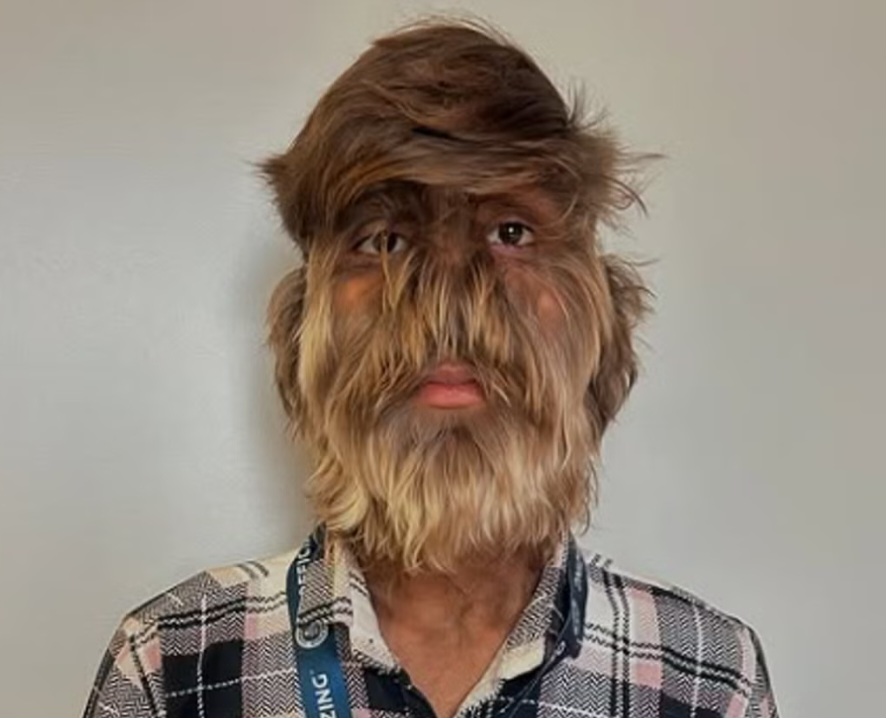 Lalit Patidar has over 95 per cent of his face covered in hair due to a rare condition called hypertrichosis, or “werewolf syndrome”.