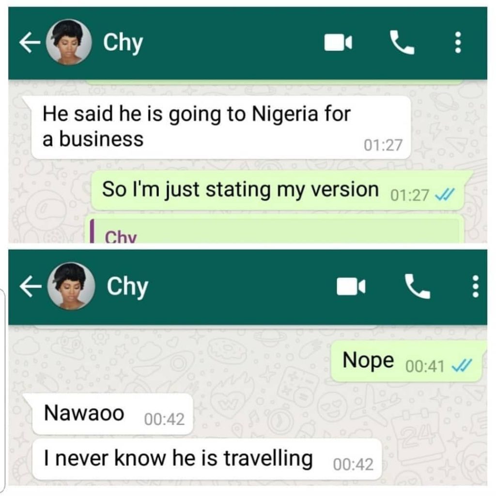 Andrea said her husband had told her he had an urgent business meeting in Nigeria and needed to fly down on December 27th last year. Unknown to her, he came to Nigeria to prepare for his wedding to Chinelo.