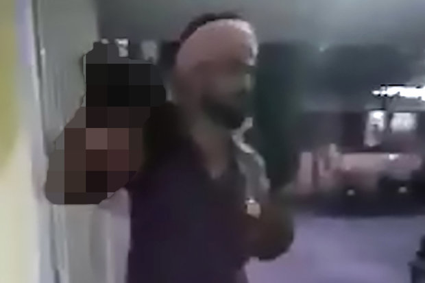 “This is my wife, sir. I gave her all the love I could,” he tells shocked police officers before one shouts: “Put it back inside!”