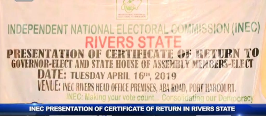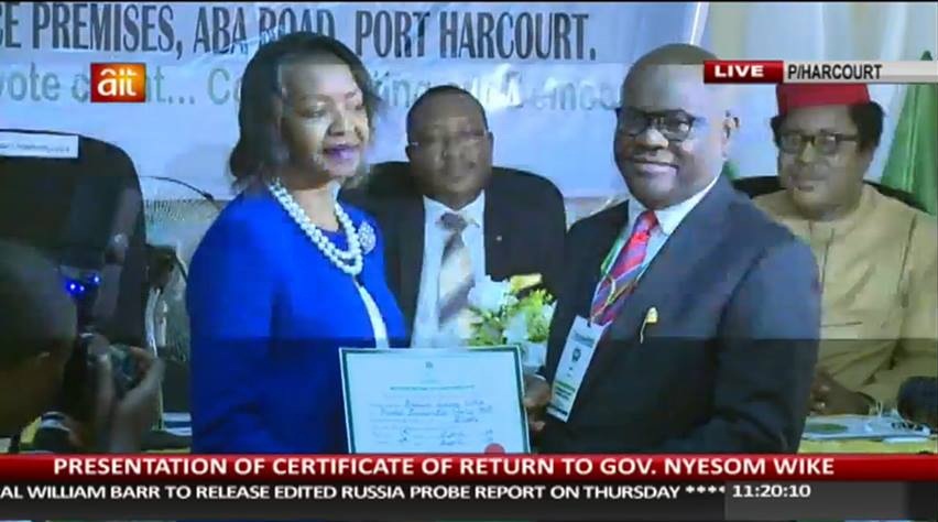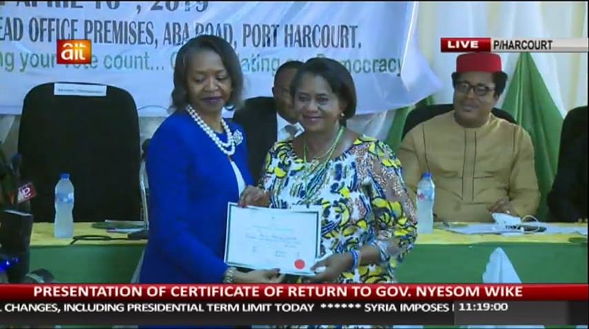 The Independent National Electoral Commission (INEC) has presented Certificates of Return to Rivers State Governor, Nyesom Wike, his deputy, Ipalibo Banigo and other members of the House of Assembly.