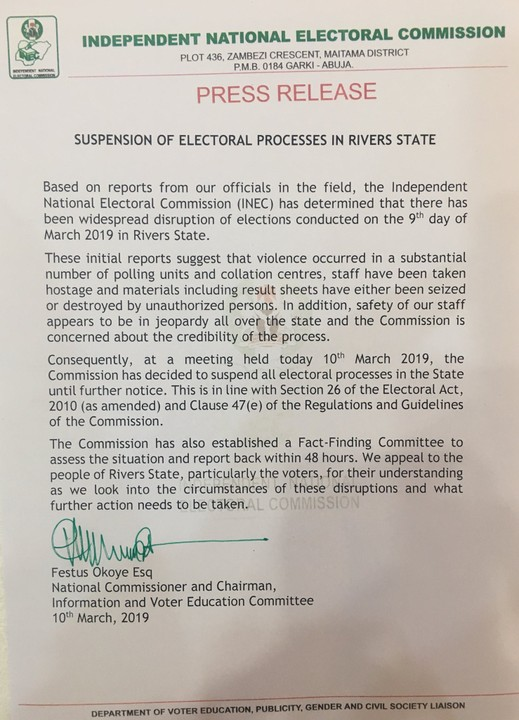 INEC Suspends Rivers State Election Process - 9jaflaver