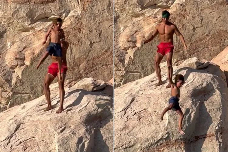 An influencer dad left his millions of followers shocked after he flung his 7-year-old son from a cliff to “teach” him a lesson.