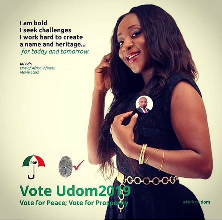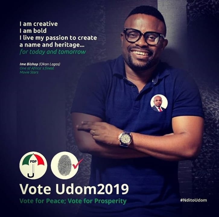 Nollywood Actors, Ime Bishop aka (Okon Lagos) , Ini Edo and Aniebiet Francis releases campaign posters to support PDP Governorship Aspirant and also the Governor, Emmanuel Udom for 2nd term.