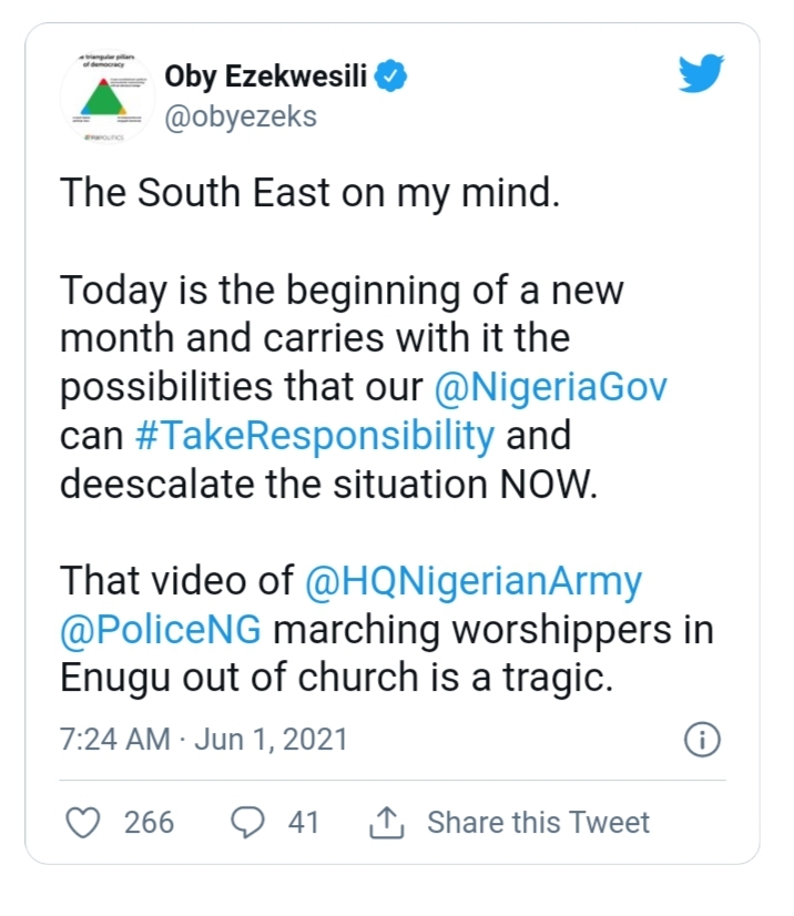 A former Minister of Education and co-founder of the #BringBackOurGirls movement, Oby Ezekwesili took to Twitter this morning, June 1, to lament about the worsening insecurity in the Southeast region of the country.