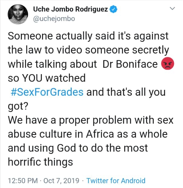 talking about Dr Boniface, so YOU watched #SexForGrades and that’s all