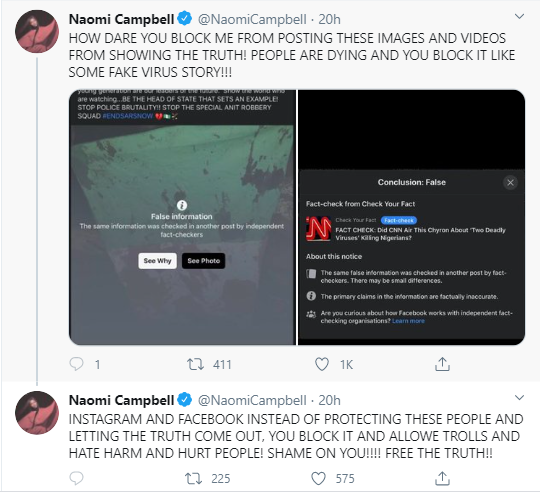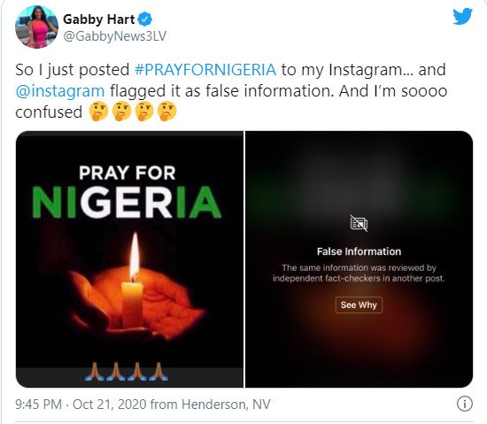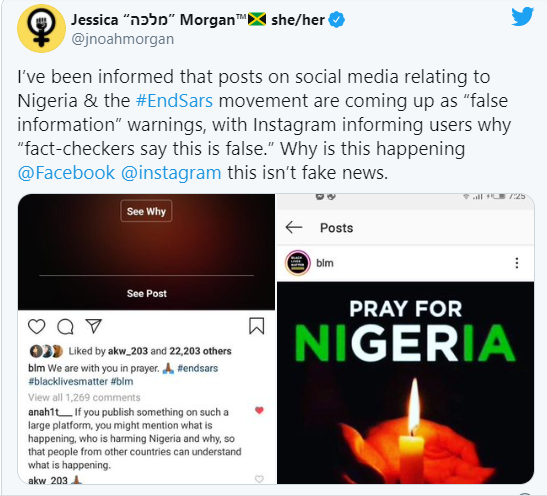 Recall several Instagram users took to their respective accounts to react in anger after their posts aimed at spreading awareness about the #EndSARS campaign were flagged down as “false information.”