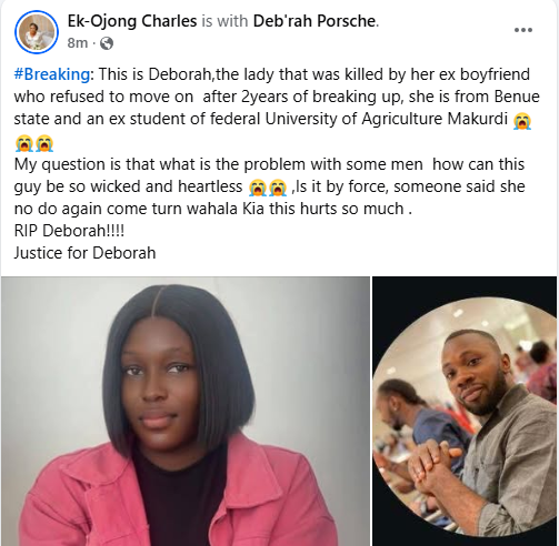 “Debrah Porsche, d3ath do u this one my dear. May ur kîller know no peace. U were such a hardworking lady with great plans for ur future. Kai ground don swallow this one,” one Vera Gabriel wrote.