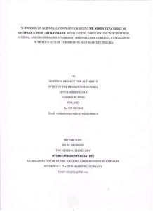 The group addressed the lawsuit to the National Prosecution Authority, Office of the Prosecutor General of Finland, a country where Ekpa is resident.