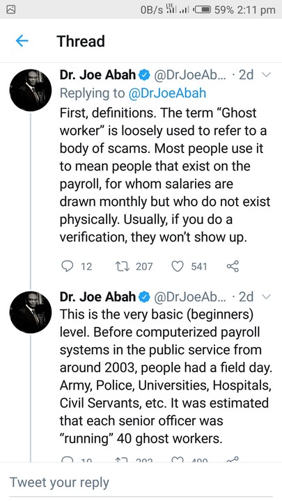 First, definitions. The term “Ghost worker” is loosely used to refer to a body of scams. Most people use it to mean people that exist on the payroll, for whom salaries are drawn monthly but who do not exist physically. Usually, if you do a verification, they won’t show up.