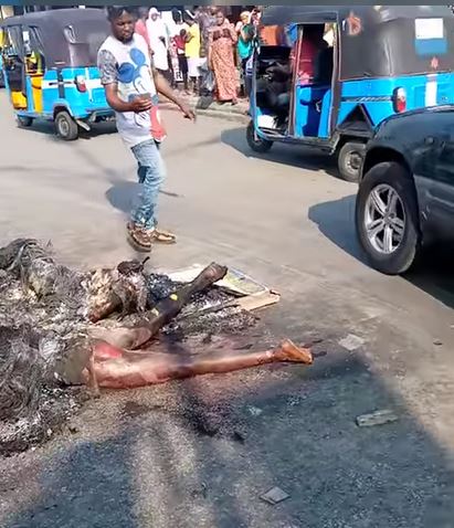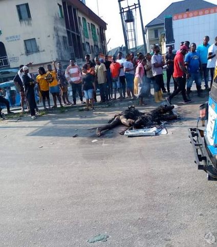 According to an eyewitness, the third suspect was later caught at Ojabugbe street, along Okumagba Road, where he was also beaten up and set ablaze by the angry mob.