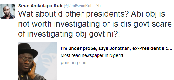 The Afrobeat singer asked the question against the backdrop of former President Jonathan telling Bloomberg TV yesterday that he is aware that he is under investigation.